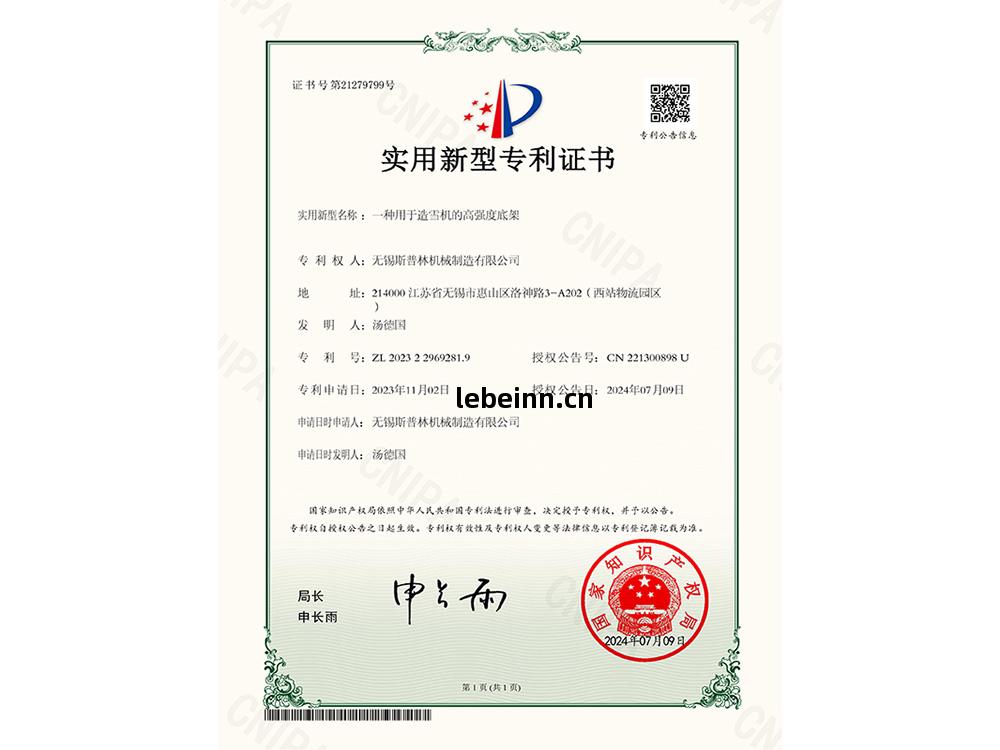 壹種用(yong)於造(zao)雪機(ji)的高強度(du)底(di)架(jia)