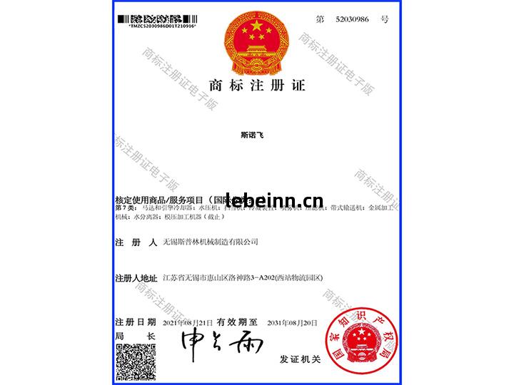 斯諾(nuo)飛商標註(zhu)冊(ce)證(zheng)